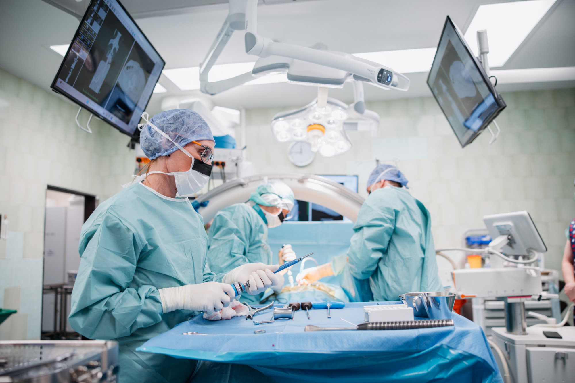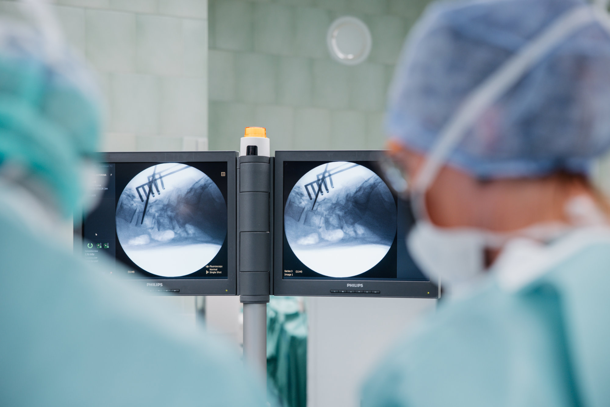 Na kontrolách provádíme RTG, EOS nebo CT (dle indikace lékaře) k posouzení hojení kostní dézy a stability implantátu.